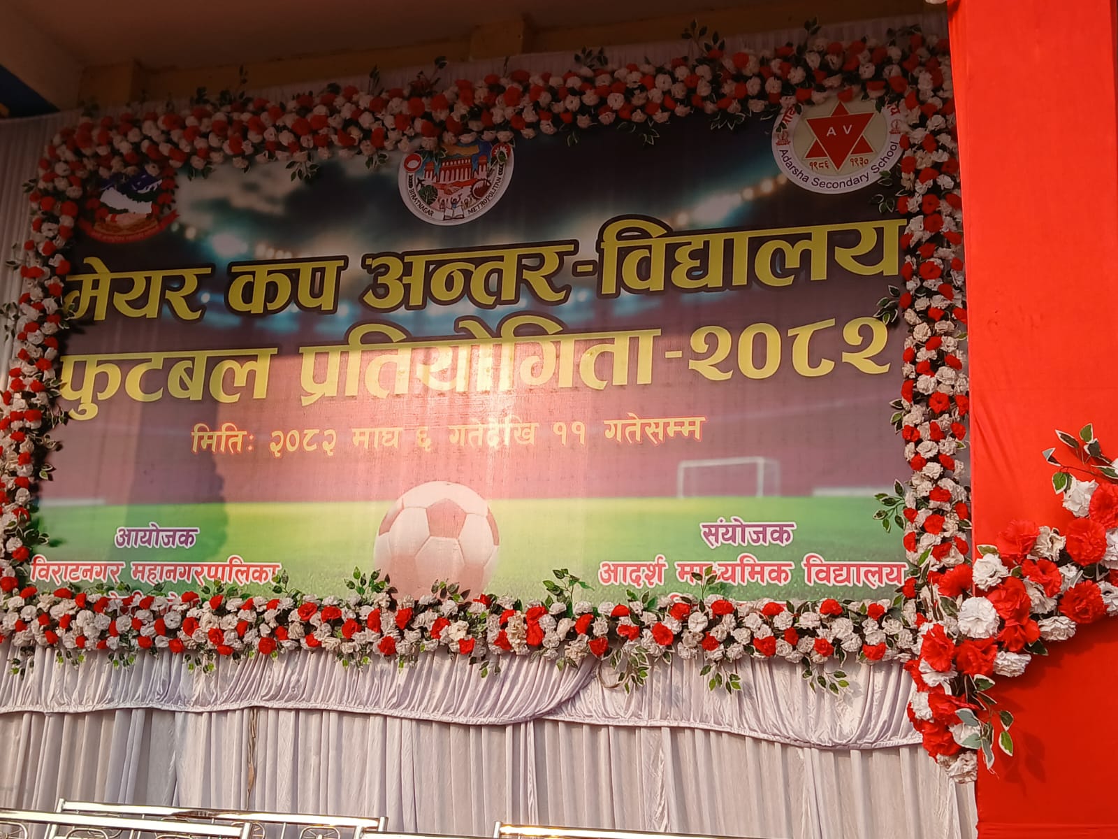 माघ ६, विराटनगरमा पहिलोपटक ‘मेयर कप अन्तरविद्यालय फुटबल प्रतियोगिता २०८२’ आयोजना हुने भएको छ। प्रतियोगिता २०८२ साल माघ ६ गतेदेखि सुरु भई माघ ११ गते समापन हुने आयोजकले जनाएको छ।